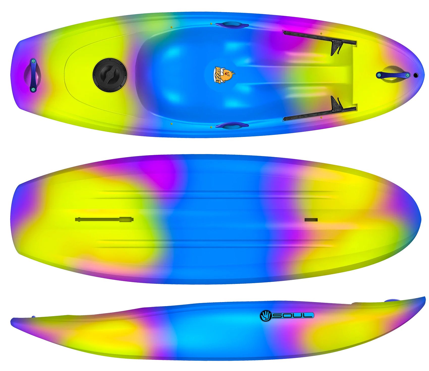 Introducing Soul's first sit-on-top kayak for kids. The Nugget is focused on introducing your kids to rivers., but in a way that makes it easier for mom and dad. Because you sit on it, not in it, kids can freely get on and off it at will, meaning you're not chasing them to empty it out each time. This makes the kids self sufficient.